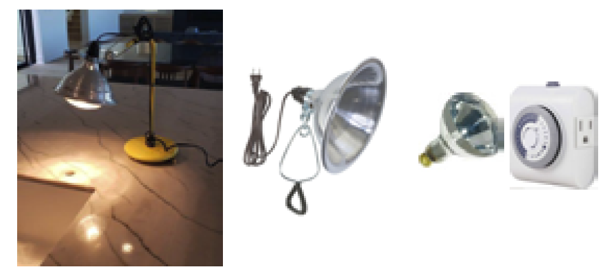 Position a heat lamp or painter’s light 16–24 inches away from the surface.