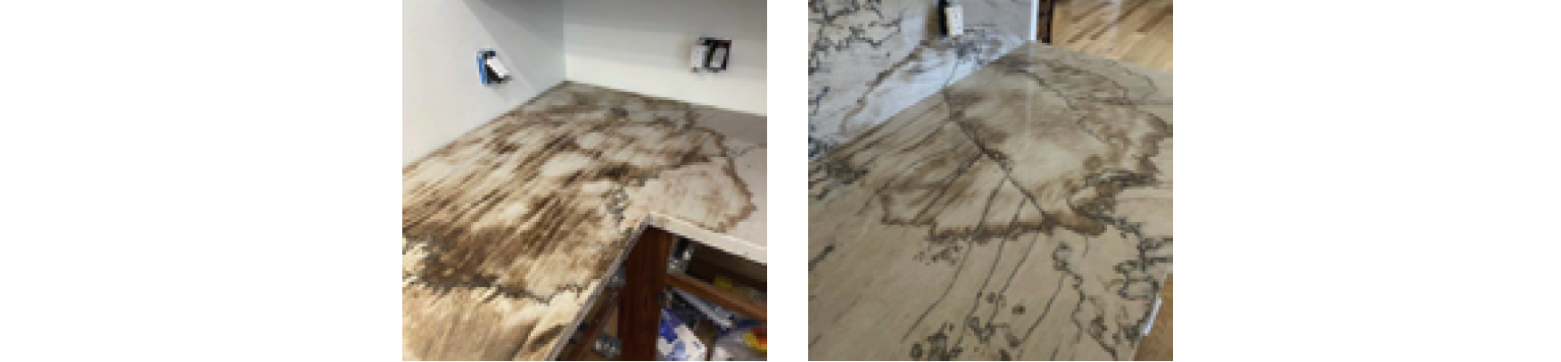 Because quartzite has a tight, dense pore structure, moisture can sometimes get trapped along cut or unsealed edges. This may cause darkening or discoloration, especially on lighter stones. Oils, detergents, and cosmetics can worsen the issue if repeatedly introduced to those untreated edges.